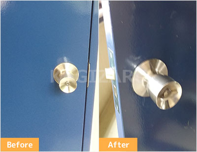 | 施工内容 | お店の連絡扉、ドアノブ錠の交換です。故障したドアノブ錠を取り外し、新たにSHOWA製のドアノブ錠を取り付けし作業完了です。 |